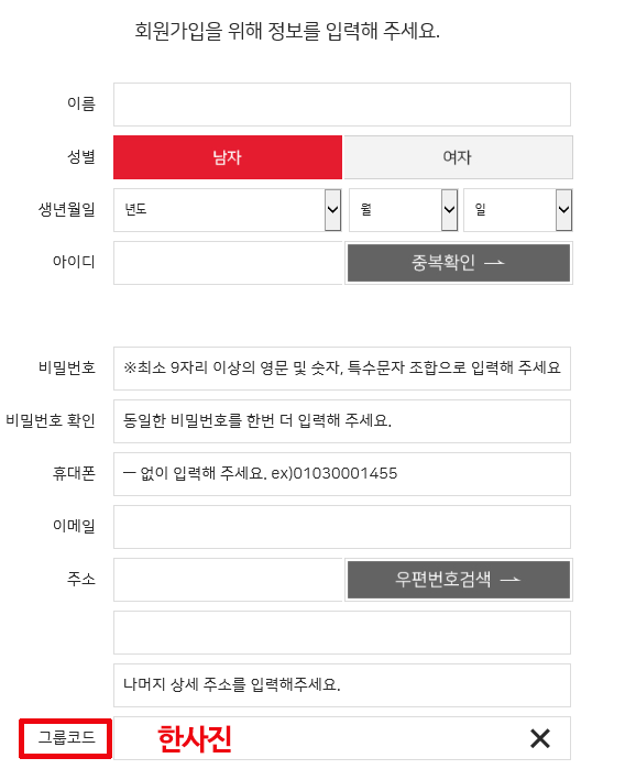그룹코드란에 " 한사진 " 을 입력하시면 전체강의
